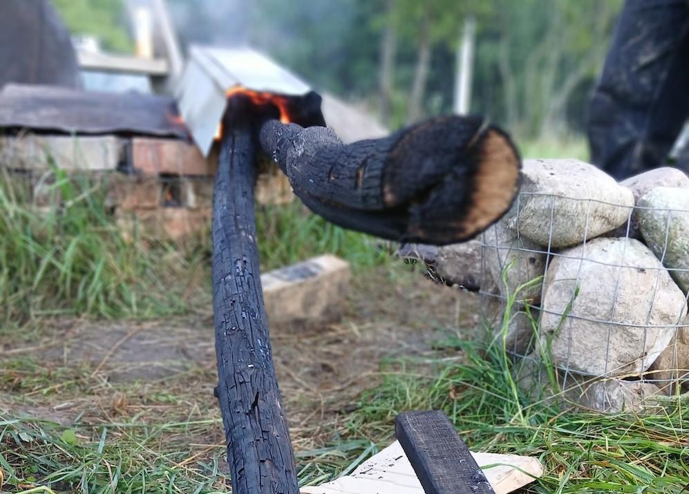 A mixture of the collected charcoal and wood glue added strength and a sort of striped look to the piece.