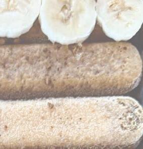 Spread a layer of the mascarpone and cream mixture over the ladyfingers. (Add slices of banana for even more delicious flavour!)
