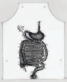 The chance choice of a slice of log with an uneven cut perpetuates the spinning motion without assistance. As the weight of the wood pushes round, the sunburst stitching spins forwards and backwards.