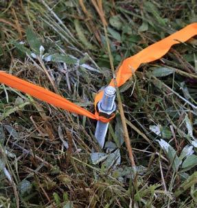 From a distance, the ribbons seem to disappear and reappear as they flutter in the wind. The same method used in the previous two orange ribbon iterations was applied here: metal rods and bolts were inserted into the ground at even intervals.