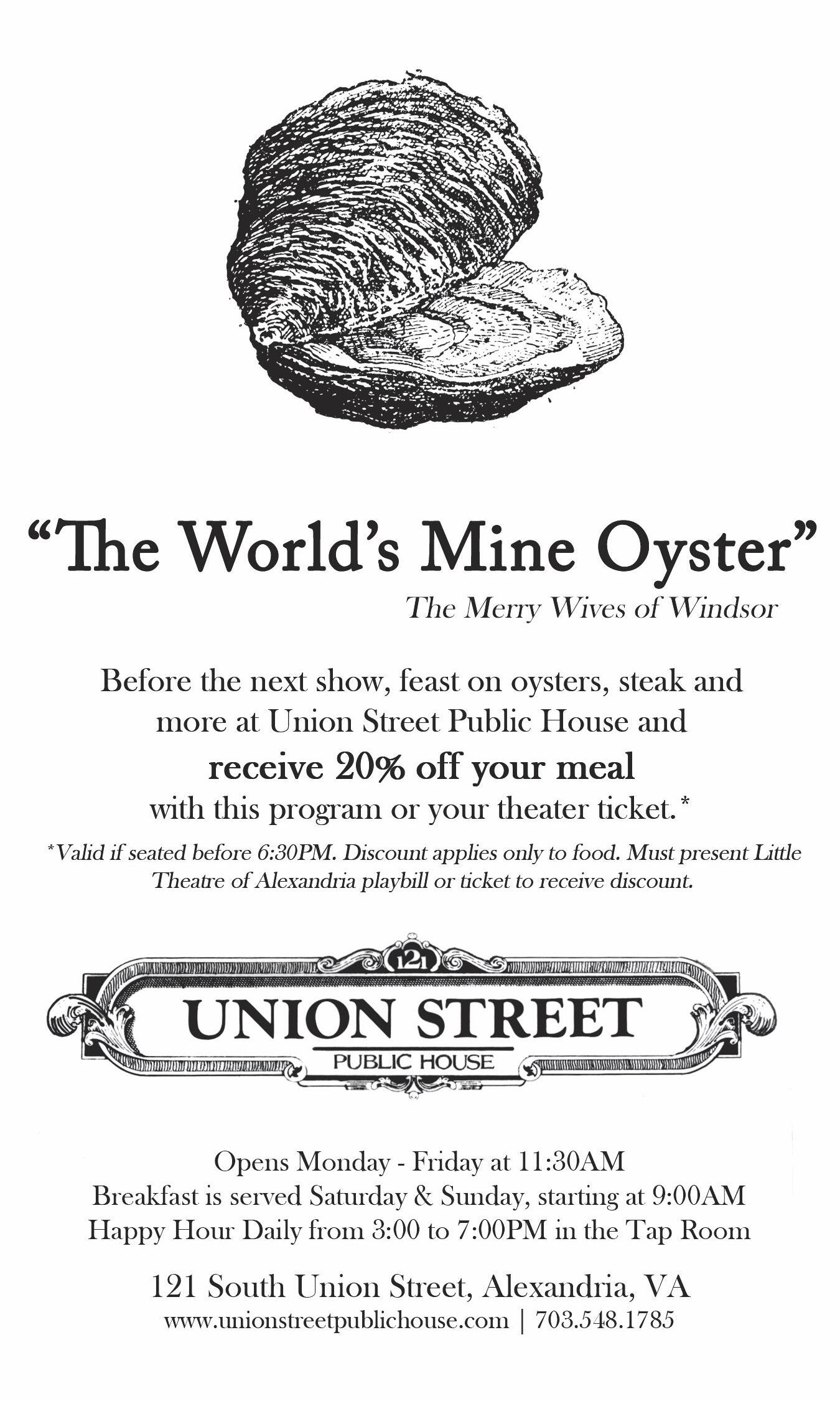 The Little Theatre of Alexandria, 600 Wolfe Street, Alexandria, VA 22314 Public Performances: Wed.–Sat. at 8:00 p.m. and Sunday at 3:00 p.m.