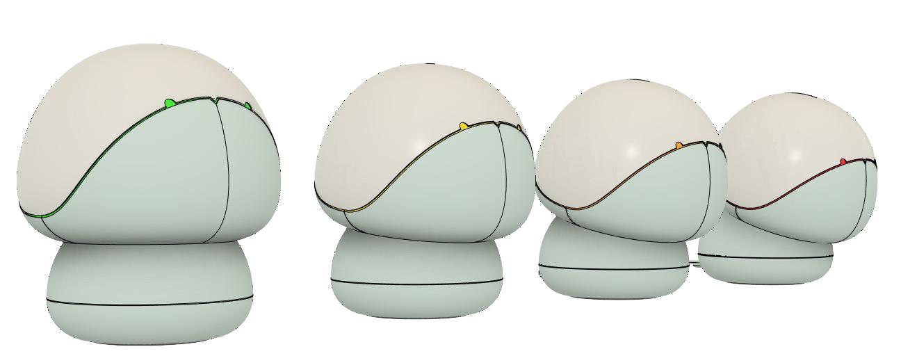 The implimention of a circular form for the main body. Addition of a developed face detail as seen in the final Hub device design. This also includes the lighting aspect to convey CF Rating.