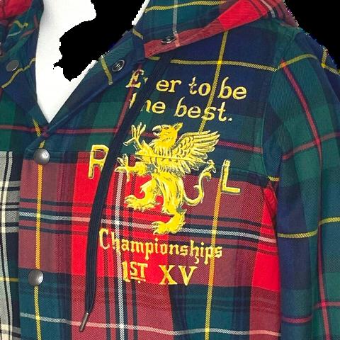 REMARKS: Polo Ralph Lauren offers a modern take on the classic tartan pattern with this jacket, exerting its laid-black influence in the form of a hooded silhouette. Animated with an eye-catching patchwork of checks, this offering is a playful and casual alternative to your traditional plaid shirt.