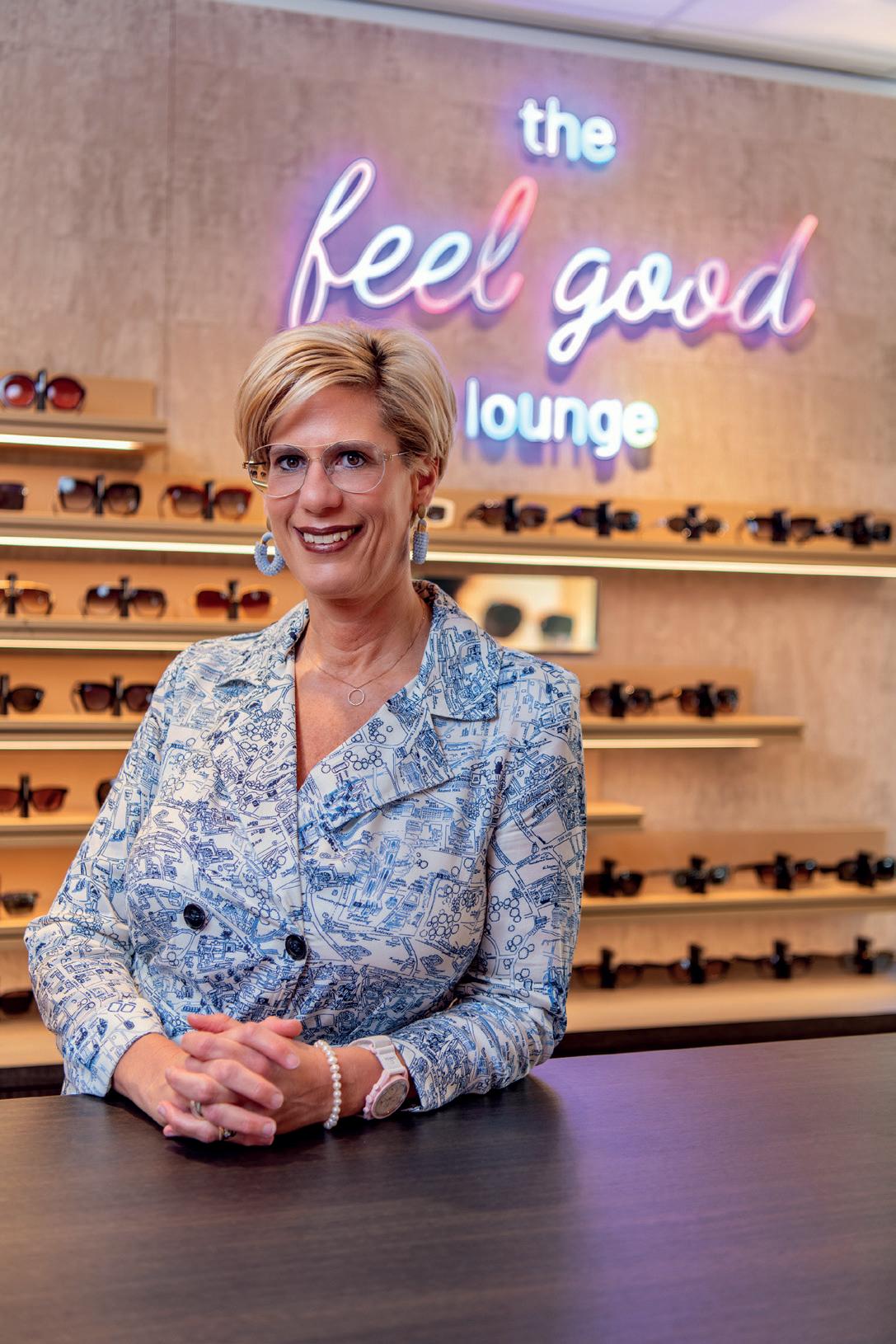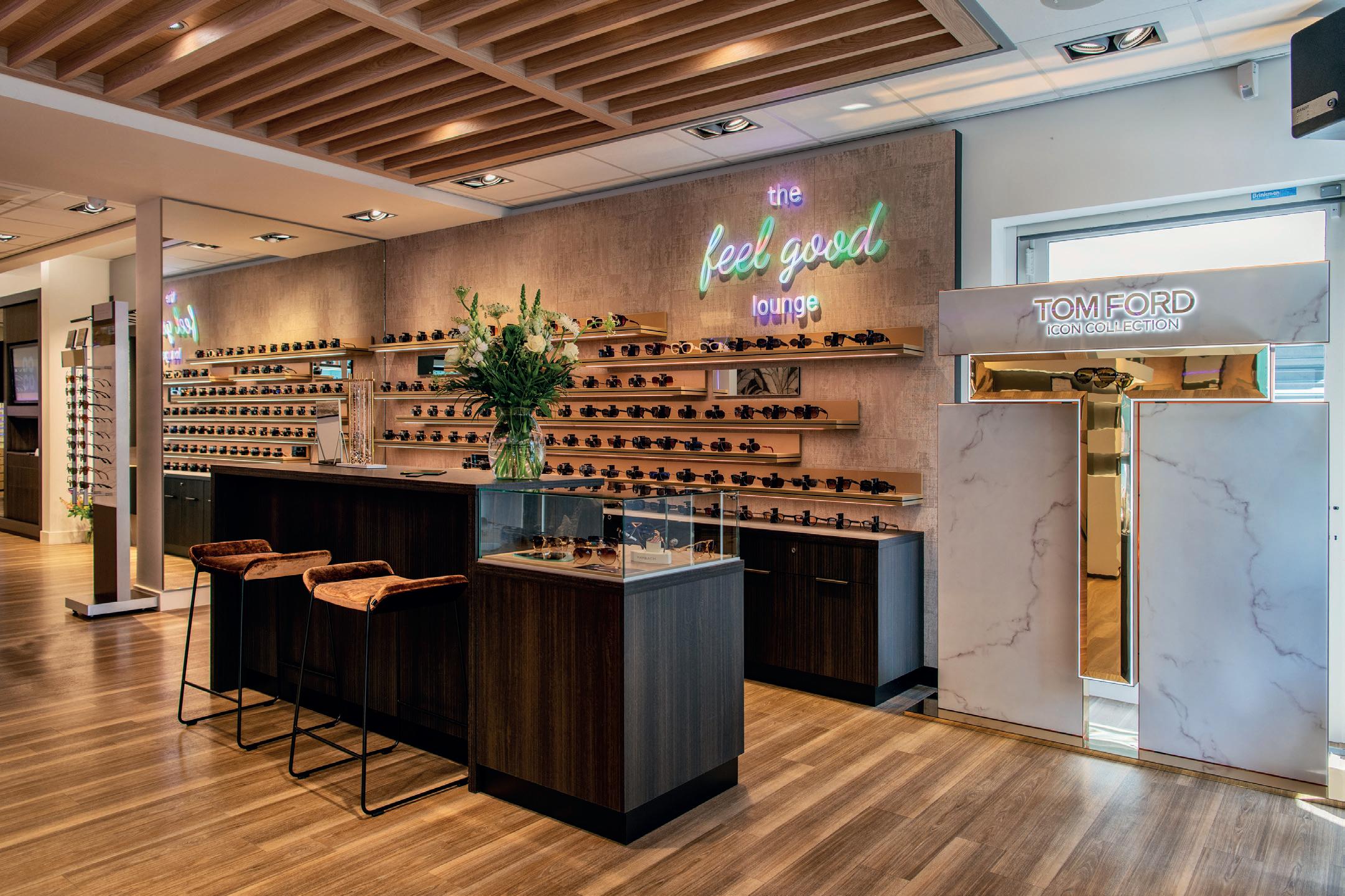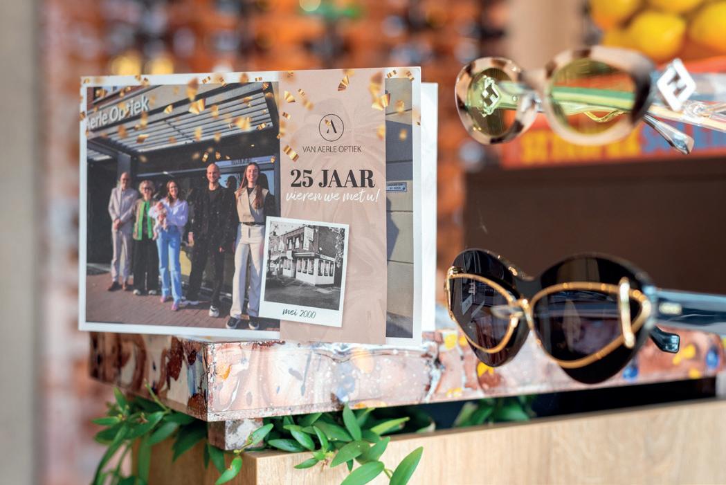 kunnen doorverwijzen als dat nodig is. Die samenwerking met collega’s vind ik enorm waardevol”. Qua marketing is Annalie onder andere actief op Instagram en Facebook, wat haar zichtbaarheid én klantenkring vergroot. “We zitten hier in Heythuysen, een dorp, maar mensen komen van heinde en verre”. De inkoop doet ze grotendeels op gevoel. “Soms zegt iemand: ‘Ik zou dat montuur niet inkopen.’ Dan denk ik: ik wel. Omdat ik het mooi vind. En dan verkoopt het ook”. Merken als Akoni en Loewe zijn haar favoriet vanwege het design en de kwaliteit. “Ik hou ervan als een montuur goed in elkaar zit. Ook een fashionmerk als Tom Ford doet het hier goed”.