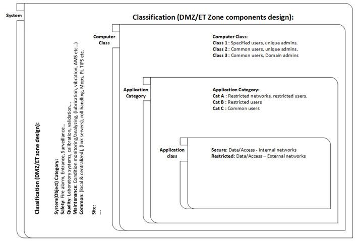 The concept of ET systems is to make sure that all systems have management. ET systems are preferably placed at Level 3.5 (Industrial DMZ). They can be isolated or be a member of a ”function-group”, depending on the system’s size. An example of functional grouping can be viewed below (see Figure 1.4 to the right in the enlarged ET “environment”) with the different groups ET1-4: