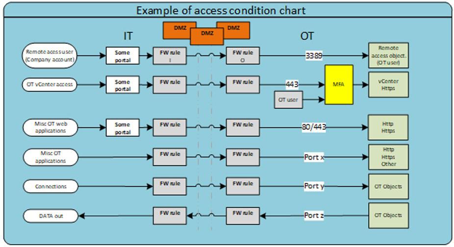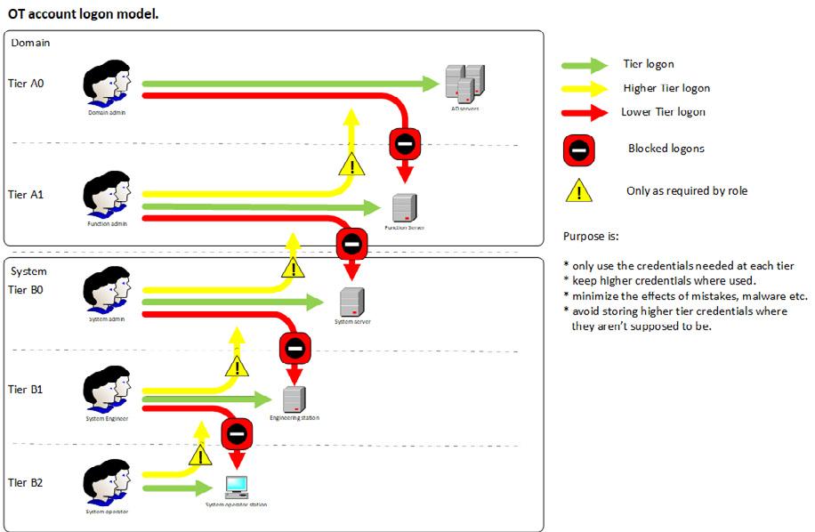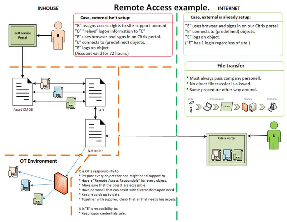 Employees with need, may after risk assessment and authorization, get special access from the enterprise security zone to the industrial one via for instance AD and firewall settings