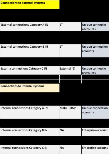 As ET systems can be a risk for both the IT and OT environments, the ET systems should be classified, user account management strictly enforced, and the communications to and from them should be securely designed. IT terminates at level 3.5, while OT terminates at level 3. (I.e., OT is responsible for leaving the correct data at level 3.) Like for any OT connections, use of unique connection accounts should be enforced. Further, any remote access (to connect from distance) or external connections (to send out or bring in data to/from the outside world) should be considered a high risk and any ET system involved be secured adequately. All connections in/out of a segment should be considered as exceptions and be documented as such. All external connections involving high-risk ET systems should be reviewed at least annually.