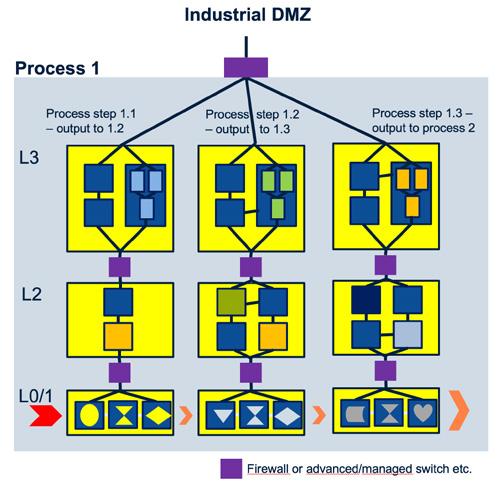 Consider having double or triple network connections (fibres), i.e., redundant communications paths, from key production/distribution processes and their network segments to the industrial DMZ (should be part of the security reference architecture). These should also be adequately physically separated