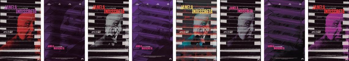 A busca pela sensação de mistério e segredo foi base para a composição desta peça gráfica. Assim como no thriller de Alfred Hitchcock, o cartaz instiga a curiosidade do espectador sobre o que está por trás da persiana – em primeiro plano. O objeto construído com negativos fotográficos faz referência à profissão do protagonista do filme, que é fotógrafo e utiliza a própria câmera para observar a vizinhança.