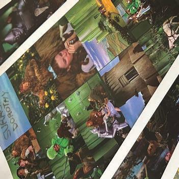 Foram selecionados 160 frames do filme para realizar a colagem, os quais foram impressos em papel couchê e em acetato. Ao escolher a figura da Dorothy para ser construída com colagens, percebeu-se que a construção com acetato sobre papel ColorPlus de diferentes cores traria originalidade para a composição final. Assim, seguiu-se testando, recortando e colando frames sobre papeis diferentes a fim de formar a figura da Dorothy. Como resultado, obteve-se um fundo formado com cenas com cores majoritariamente verdes; o laço em tons de azul; o cabelo vermelho; e o rosto seguindo a imagem original, sem ser formada por frames. Após finalizado, foram realizados diversos testes de aplicação de tipografia e composição. Para criar mais espaço e destacar as colagens, a figura da Dorothy foi reduzida. Assim, a experimentação manual prevaleceu dentro da composição corroborando para a justificação do conceito do cartaz.
