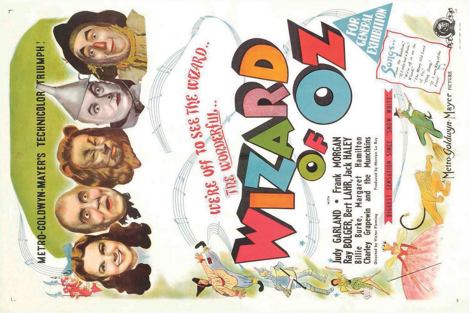 Elenco Judy Garland Frank Morgan Ray Bolger Bert Lahr Jack Haley Billie Burke Margaret Hamilton Charley Grapewin Pat Walshe Clara Blandick Terry The Singer Midgets Dirigido por Victor Fleming