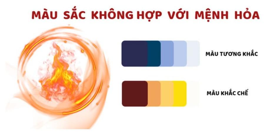 là trắng và xanh dương nhạt nếu muốn cân bằng. Tránh các màu quá tối như đen hoặc xanh dương đậm để không làm cản trở dòng năng lượng Hỏa.