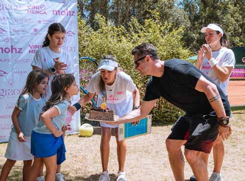 Para essa imersão, Menga contou com o apoio das coaches Luciana Camargo Tella, Ana Paula Zannoni e Helena Rocha. Elas conduziram as participantes por um circuito em quatro quadras, trabalhando dinâmicas que simularam desafios comuns, como jogadas no fundo de quadra, subidas à rede para criar pressão, posicionamento para jogos em dupla, voleios, lobs e paralelas.