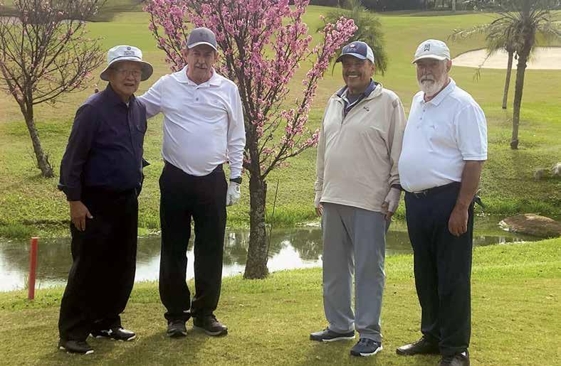 melhorou muito a minha qualidade de vida”. Segundo eles, a paixão é um legado que une gerações. “Temos jogado com nossas esposas, filhos e netos. O golfe da Fazenda da Grama nos proporciona esta união familiar”, diz Massami. O segredo para tanta vitalidade? “Ter a companhia de nossas ‘Golden Girls’: Emi, Edna, Lúcia e Angela; e o ‘ikigai’, aquela centelha que faz com que despertemos, todo dia, com a alegria de viver”, revela Massami. O grupo deixa um convite: “Convidamos aos amigos e amigas golfistas que ao transpor o portal dos 70, venham para os ‘Golden Boys’; seguramente, a vida fluirá mais alegre e leve, como ‘Cherry Blossom’”.