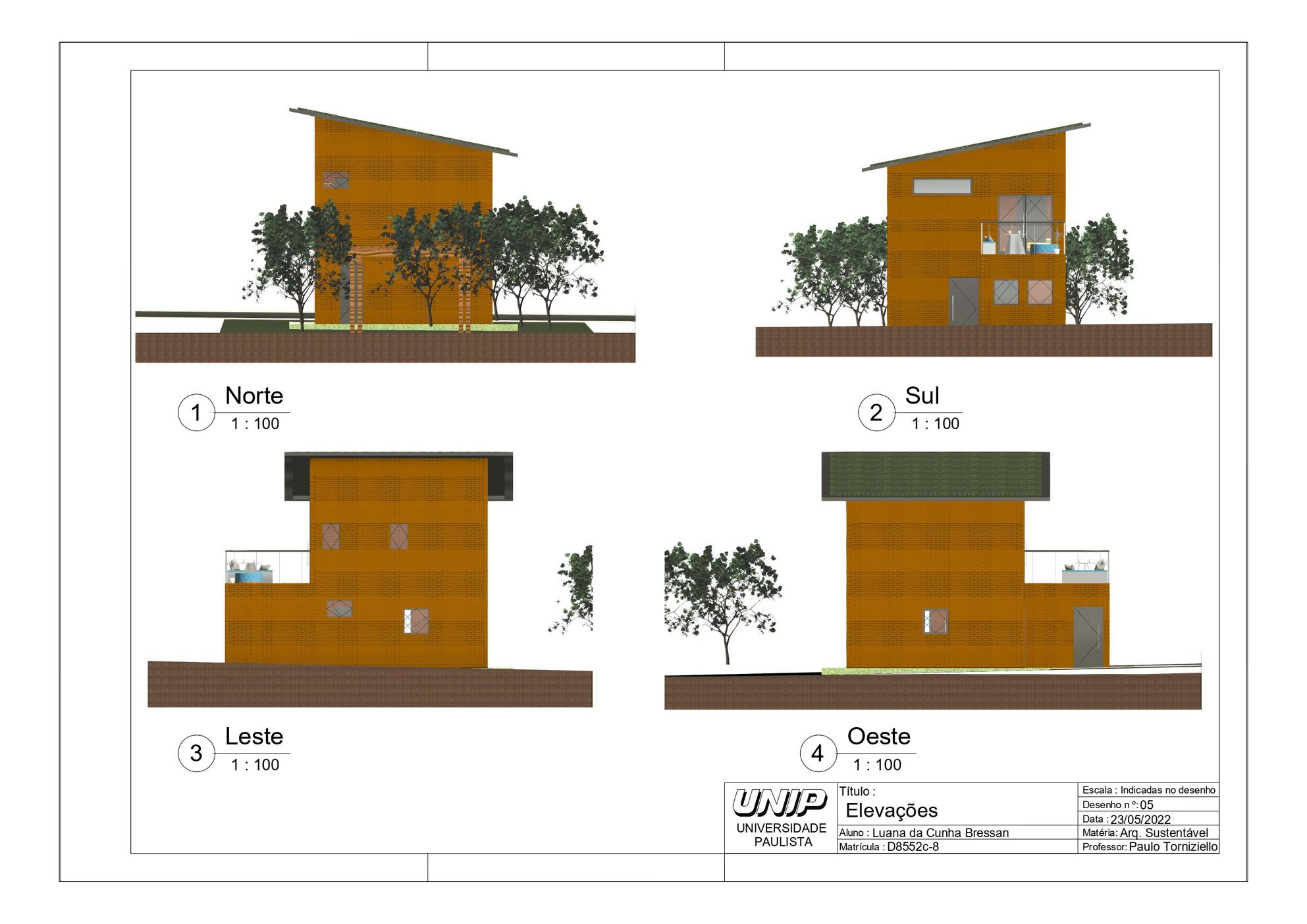 Seguindo a linha de base da proposta do projeto focado em sustentabilidade, buscamos trazer elementos para a casa que agreguem este conceito Para sua execução será utilizado o tijolo de solo cimento que além de ajudar a minimizar impactos ambientais na hora de sua fabricação facilita toda a construção, uma vez que seu molde permite o encaixe fácil e rápido, sem a necessidade de utilização de gesso ou azulejos