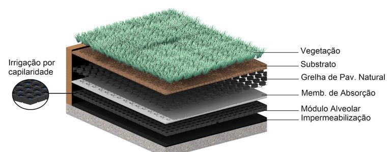 E para o telhado será usado o sistema de telhado verde que traz vários benefícios para a casa como a melhora do isolamento acústico da edificação pois, a vegetação absorve e isola ruídos