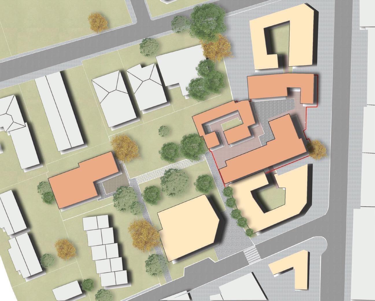 Multifunctional, multistory buildings; public function on ground floor and accommodation on the other floors
