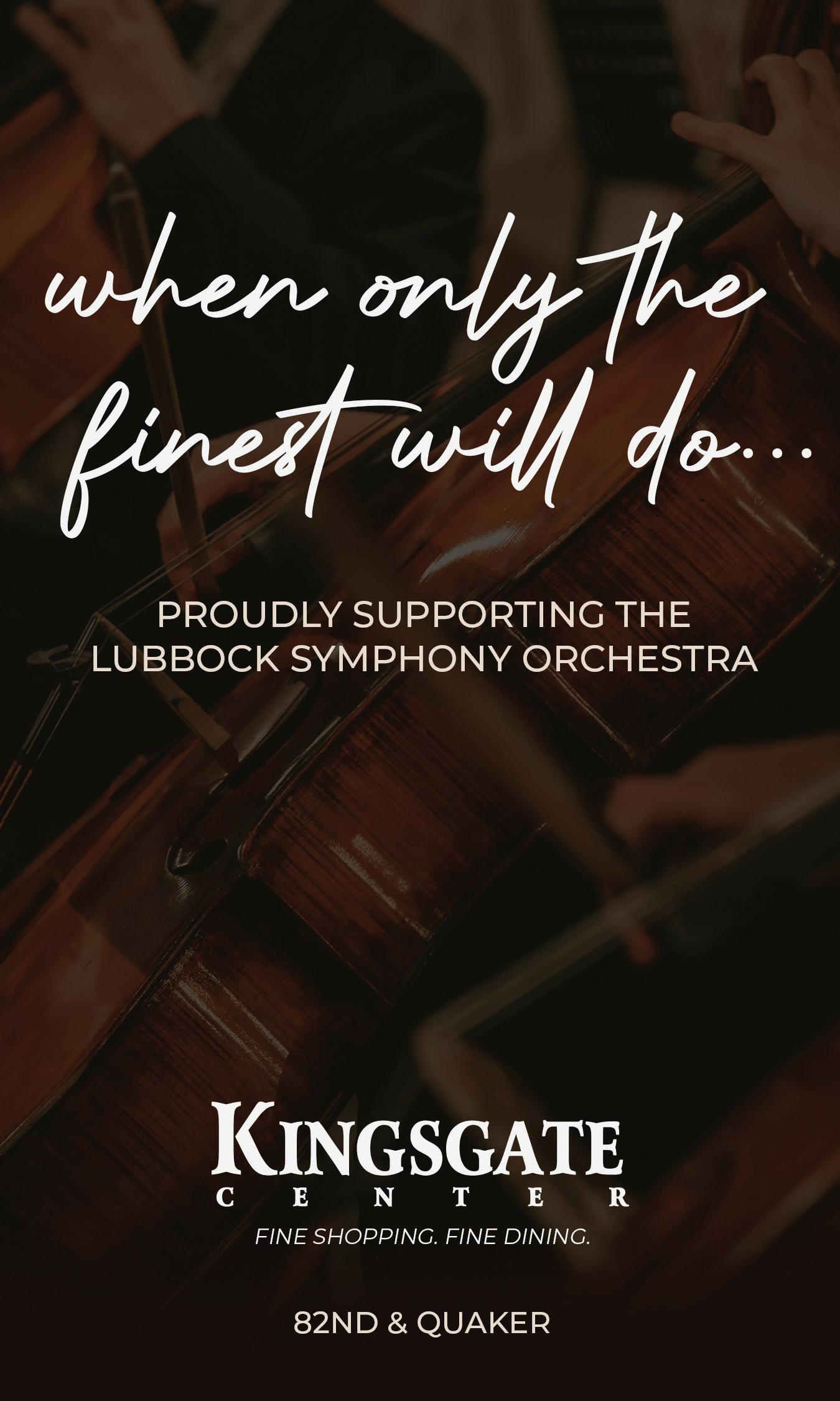 Thank you for attending tonight’s performance! We appreciate your support of the Lubbock Symphony Orchestra. The 2022-2023 “Symphonic Scenes” season promises to be outstanding. We are so excited to experience the wonder of music with you.
