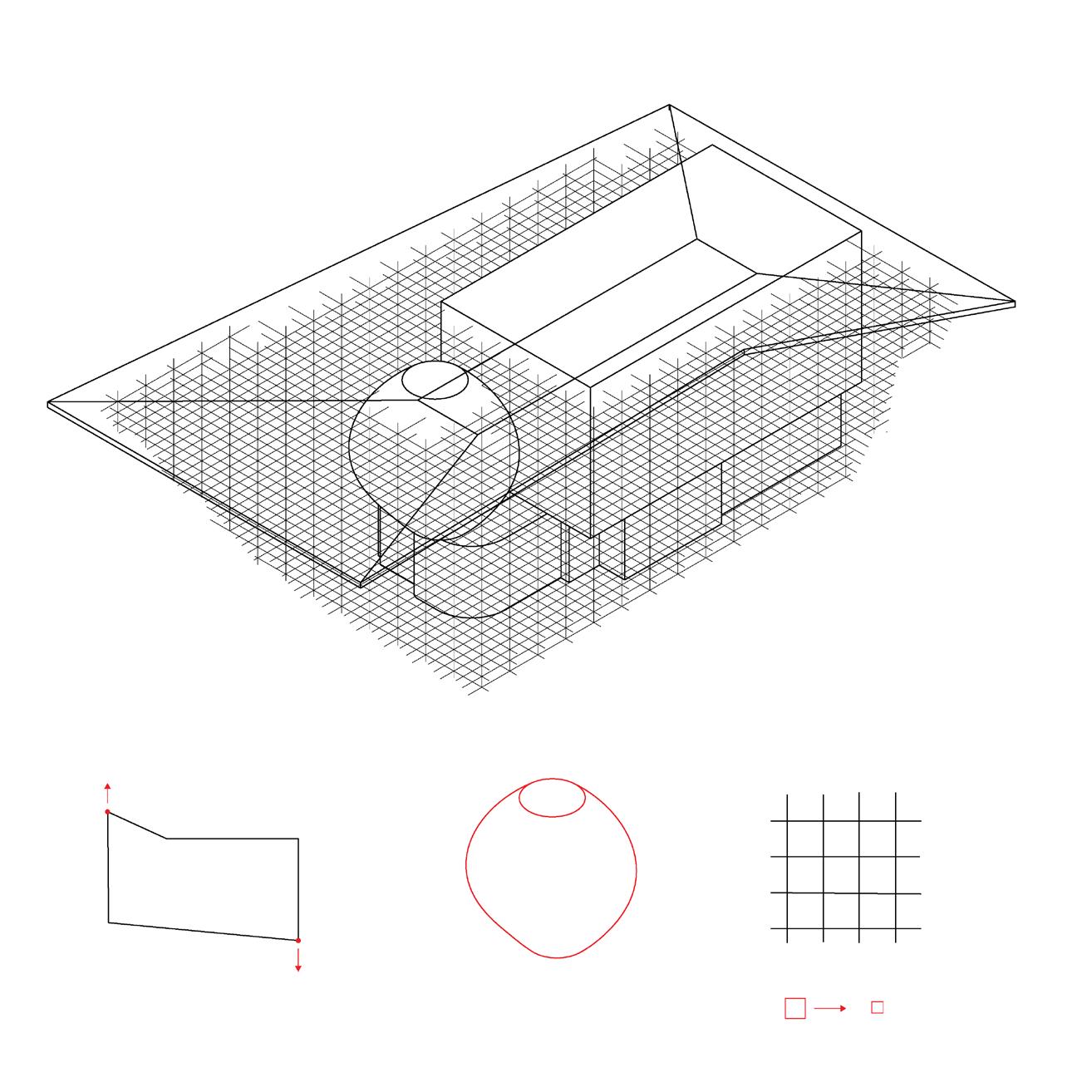 The project was concered with building energy efficiency. The new concept for the site introduces a grid that is tilted off-axis relative to North to reduce direct sun exposure during from the West and South during the hottest months of the year.