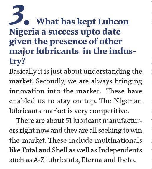 We are very pleased with updates that Lubezine magazine provides on the Lubricant industry in Africa. Keep up the good work.