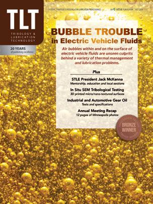 STLE’s official monthly magazine delivers world-class technical content to aid in the technical education and professional development of those in the industry. Access the digital edition at https://bit.ly/DigitalTLT or visit the TLT Archives at www. stle.org/TLTArchives