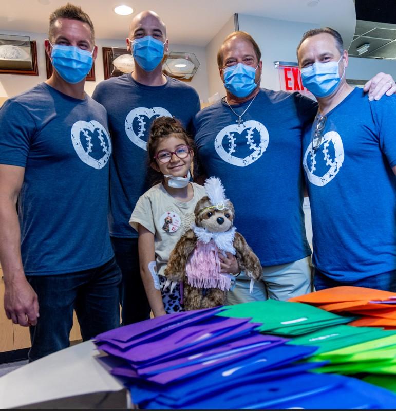 Thanks to a collaboration between the Child Life and Creative Arts Therapy Department and UMPS CARE Charities, the official philanthropy arm of the Major League Baseball (MLB) umpires, pediatric patients and families enjoyed a funfilled day in the Child Life Zone and inpatient units. The July event featured a special visit with four MLB umpires, the delivery of 100 Build-A-Bear stuffed animals and goody bags, as well as the opportunity for patients to select personalized outfits for their new furry friends. The MLB umpires warmly greeted the children, adolescents, and caregivers while helping them dress the bears in their new wardrobes. One adolescent patient was particularly excited to meet the umpires and receive a Build-A-Bear adorned in the uniform of her favorite baseball team, the NY Mets. The umpires exchanged playful banter with the patient as her ear-to-ear smile lit up the room. Another young patient enjoyed quality time with one of the umpires as they worked their way together through an activity book inside of the goody bag. “Special visits play an important role in supporting the emotional well-being of our pediatric population. We are grateful to UMPS CARE Charities for helping us to build treasured memories for patients, families, and staff alike,” Cheryl Strauss, CCLS, Zone Clinical Coordinator, said.