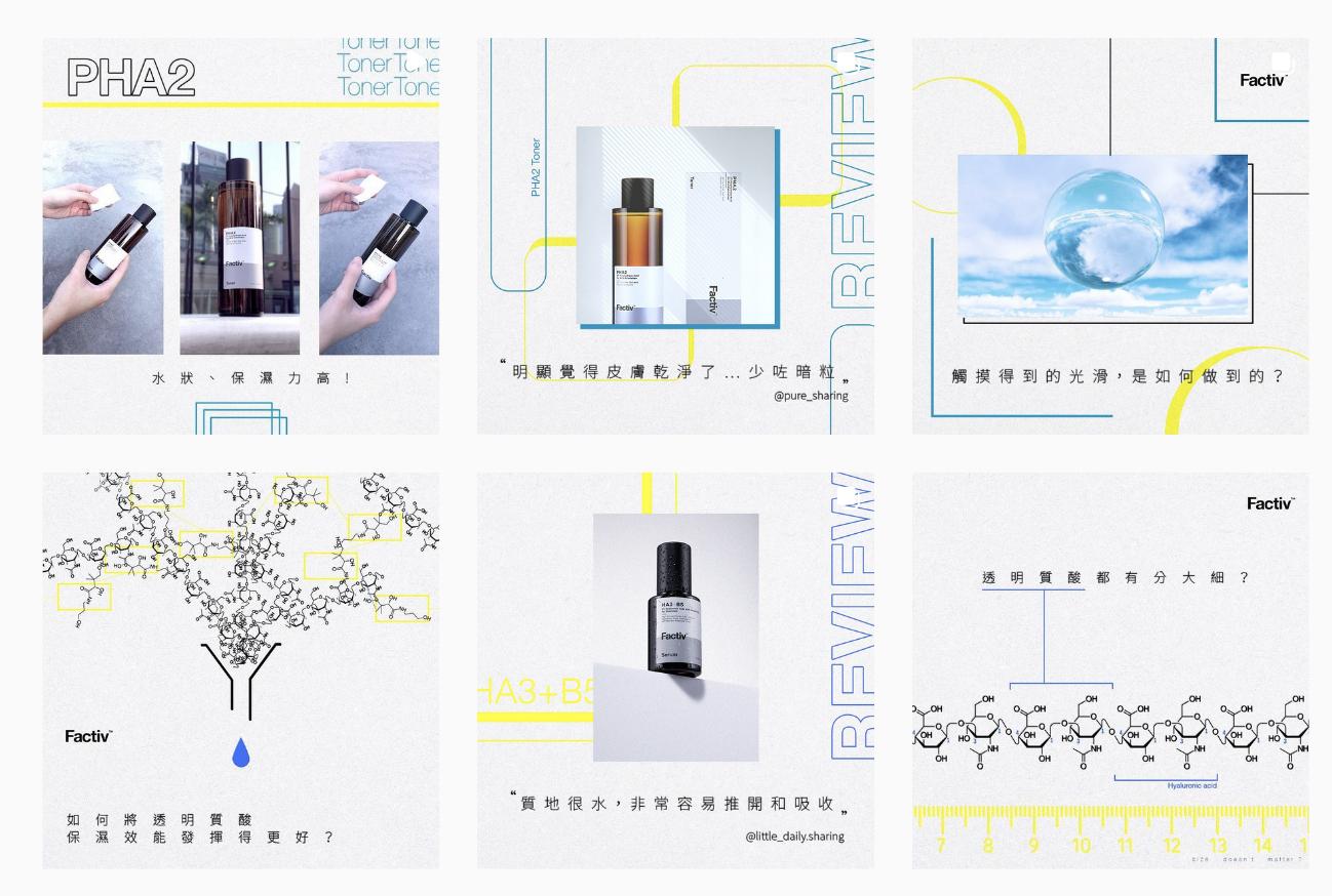 Theinstagramaccount@factic.hkisa socialmediaaccountrunbyFactiv.To promoteitsbrandingasskincarebasedon scientificresearch,theonlinepublication usuallyshowsvariousdemographicsto demonstratethescientificknowledgeof theteam.Iwasresponsibletointerpret thebrieffromcopy-writersandvisualised chemicalcompounds,aswellas scientificallyaccurategraphs.