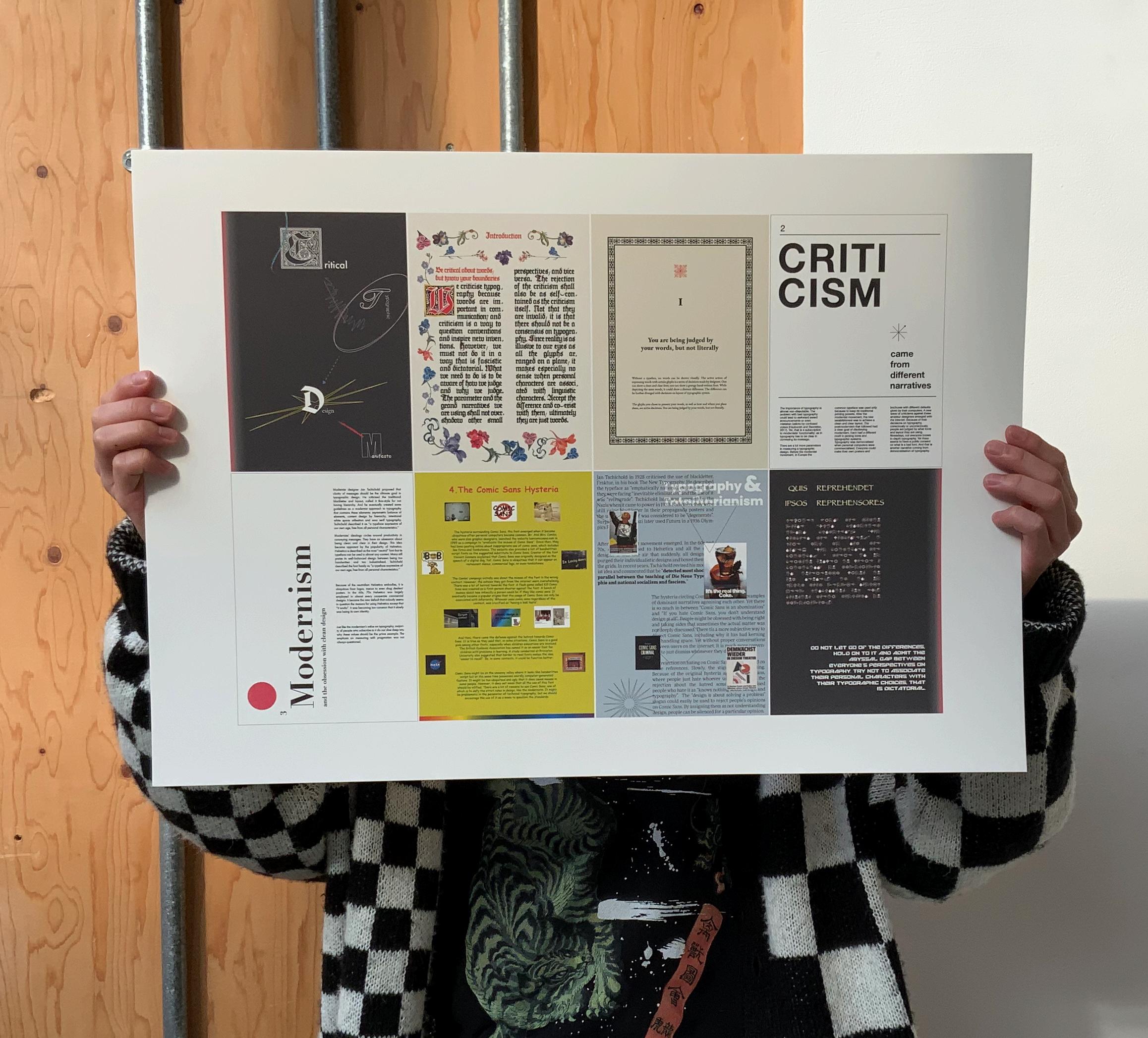 Thisso-calledcriticalmanifestoisactually aself-referentialjoke.Itwasnotcriticalof anything,norwasitmanifestingany ideologies.Bycombiningthepostmodern humourwithtypographicdesign,itaimsat exploringthehistoryofdesignlayouts,while makingfunofpeoplewhotakethemway tooseriously.