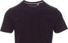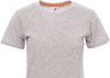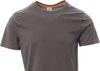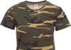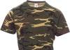 Men’s short-sleeved crew neck t-shirt, with 1.5 cm spandex mix rib neckband with top stitching on the front, contrasting shoulder-to-shoulder reinforcement tape visible on the inside collar, stretch seams, tubular design (camouflage version with side seams).