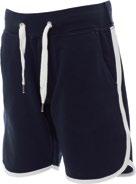 Bermuda unisex sportivo, coulisse in vita, patta con zip, due tasche laterali e profilo dei bordi a contrasto.