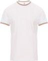 T-shirt da uomo girocollo manica corta, colletto in costina misto spandex da 1,5 cm con cucitura ribattuta sul davanti, nastro di rinforzo da spalla a spalla in colore a contrasto visibile nel colletto, cuciture stretch, struttura tubolare (colore mimetico con cucitura laterale).