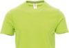 Men’s short-sleeved crew neck t-shirt, with 1.5 cm spandex mix rib neckband with top stitching on the front, tubular structure.