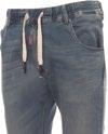Men’s Bermuda-type jeans with five pockets, two roomy LOCK SYSTEM side pockets with flap, metal zip fastening with button, belt loops at waist, stone wash, worn, faded effect, contrasting heavy duty stitching, double seams on inside leg, studs and patches in real leather. Fabric weight: 12 oz.