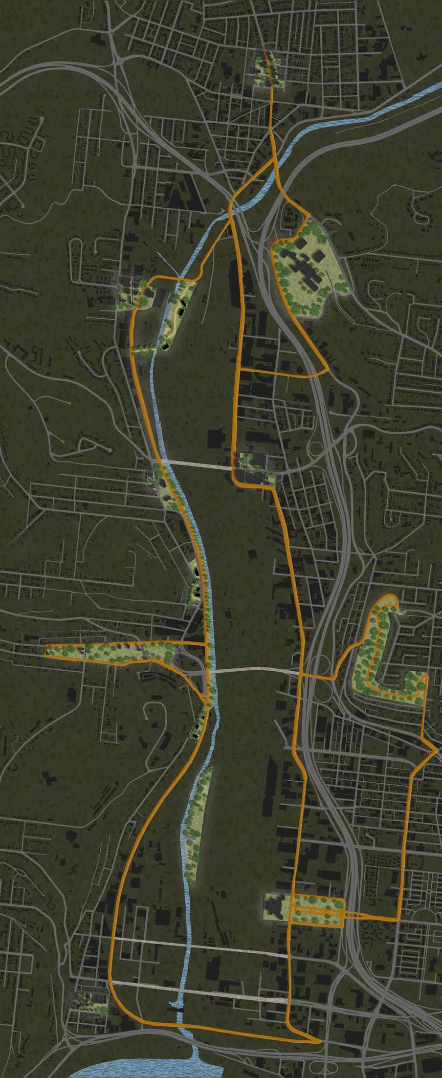 Using problem identification and the four main research values, the final site plan was produced. The repurposing of a defunct CSX rail line into a multimodal corridor connected activity “hubs” and neighborhood activities. Communities centers are near sites focused on economic expansion. The idea also includes brand-new places set aside for community involvement and green infrastructure.