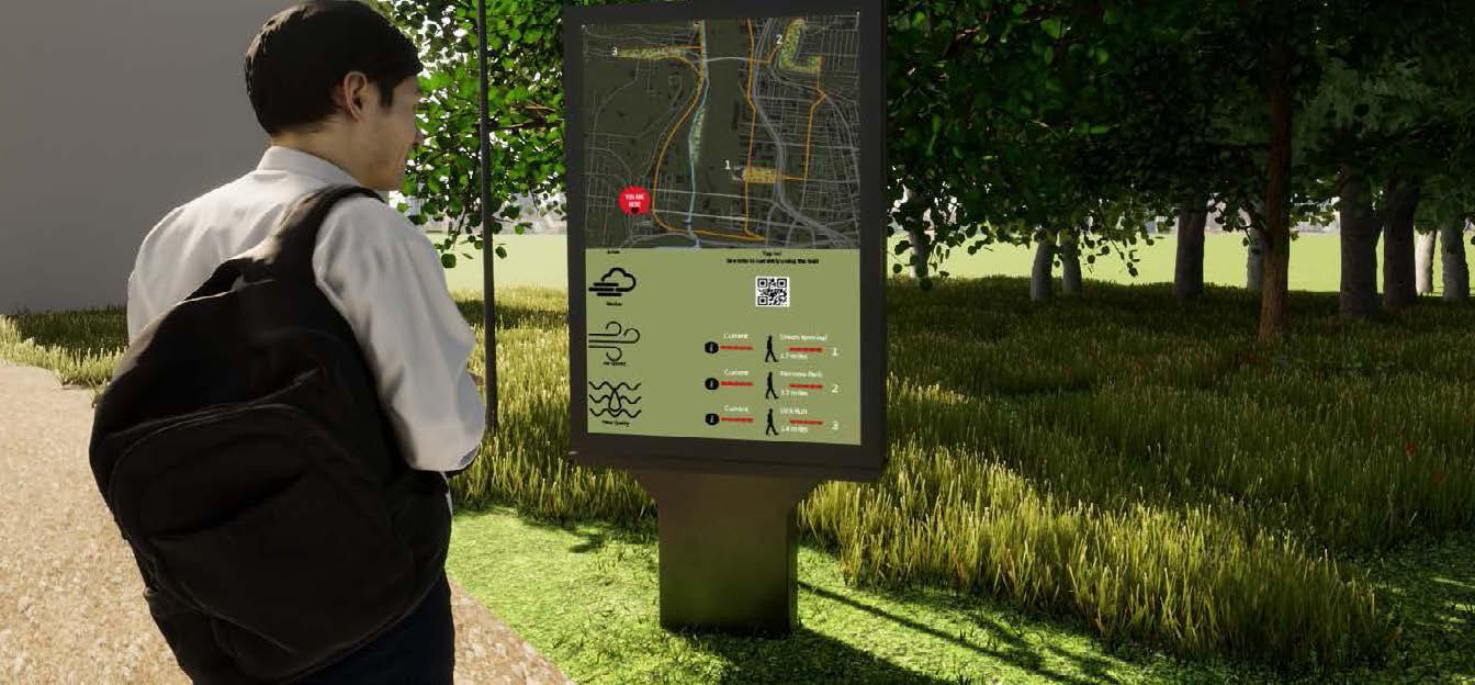 The ultimate objective of the route is to improve community engagement so that communities in Cincinnati, particularly those along the Mill Creek, can develop and take on a bigger role in Cincinnati’s history. The installation of an information kiosks, which would provide general information about the trail as well as neighborhood information, such as a heat map showing where most people are, along with a usage map showing which parts of the trail aren’t being used as much, was my group’s suggested solution to help increase community engagement.