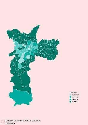 Observa se que a oferta de emprego formal tampouco segue a proporção populacional de cada distrito, estando todos os distritos com maior número de residentes em áreas com as piores ofertas de vagas de trabalho33. Isso evidencia que a tendencia de ocupação da cidade não é de acordo com a infraestrutura ou com o emprego, fatores vitais para a diminuição da vulnerabilidade da população, mas segue lógicas capitalistas que não consideram as desigualdades sociais pré existentes no tecido urbano na hora de definir o acesso à moradia.