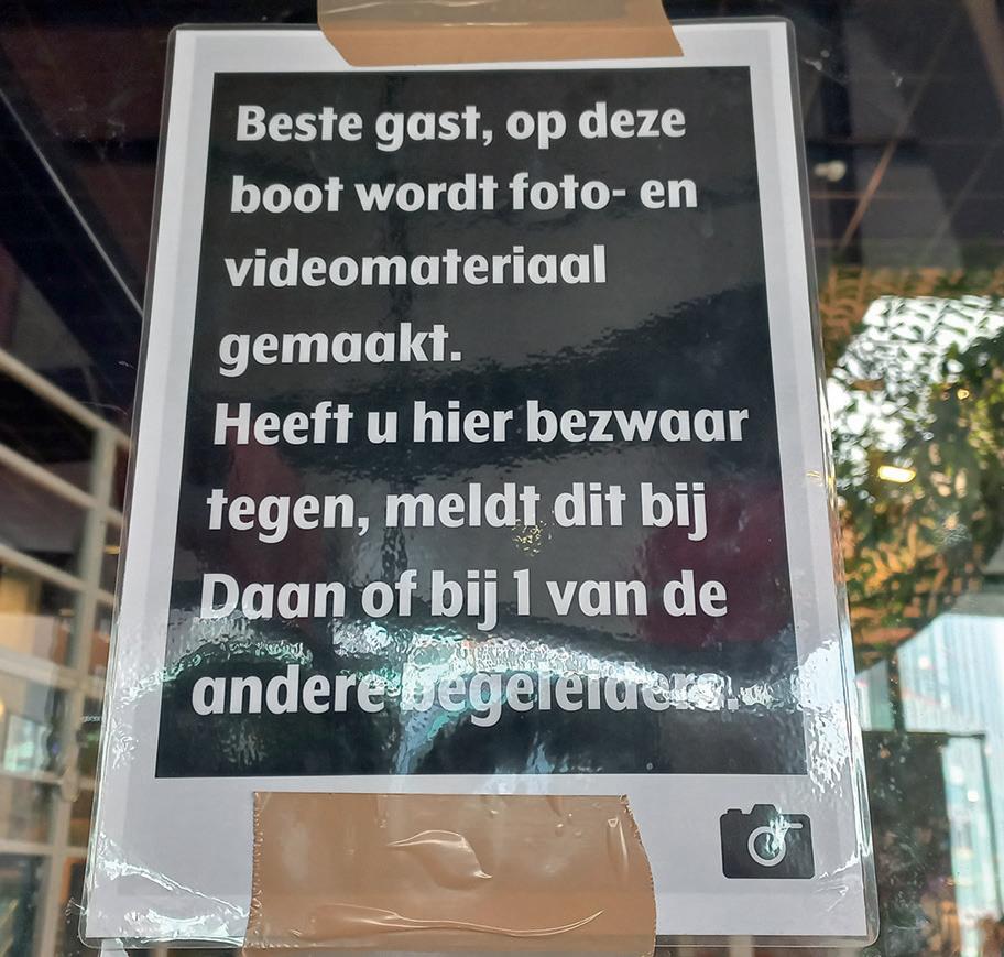 Ook tijdens het zeilreis met Sail For The Future was het van belang om de privacy te waarborgen voor alle deelnemers die mee gingen tijdens de bootreis. Omdat er tijdens deze reis veel gefotografeerd en gefilmd zou worden door de andere stagiaires en stagebegeleider van The Green Office kreeg ik de opdracht van Daan om een poster op A4formaat te ontwerpen waarop een duidelijke boodschap zou staan dat deelnemers bezwaar kunnen maken als hun niet op foto’s en video’s wilden staan. Deze posters zijn tijdens de reis op prominenten plekken op beide zeilboten zichtbaar geweest waardoor de boodschap voor iedereen duidelijk zichtbaar was.