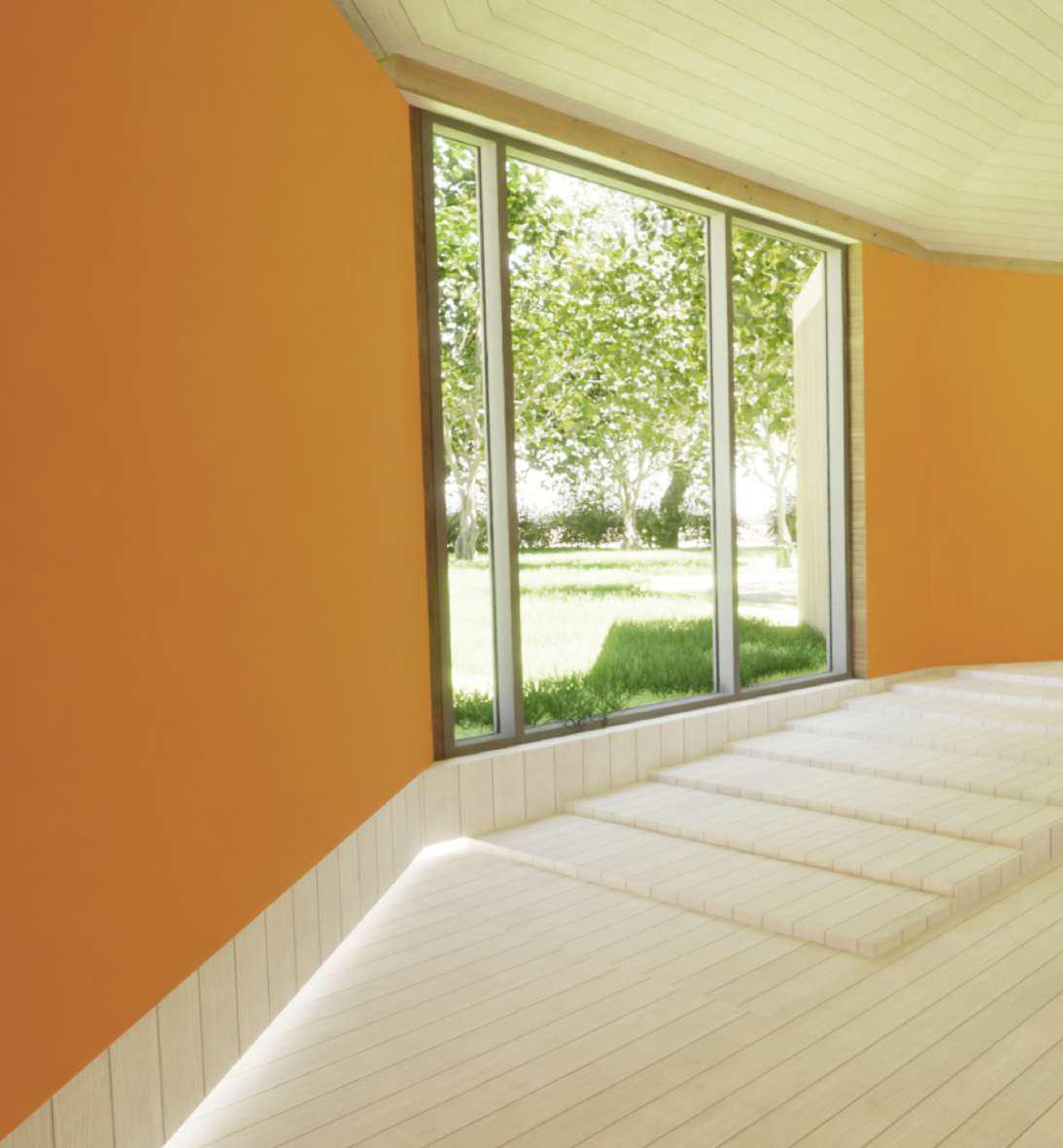 Zusätzlichwurdenaufder FrontseitedesBauwerks beweglicheHolzlattenangebracht, umeinevariableLichtsteuerungzu gewährleistenundvielseitige Nutzungsmöglichkeitenzubieten.