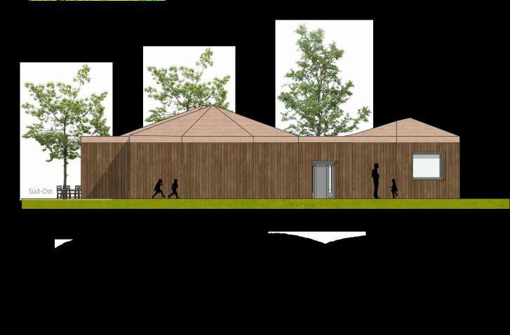 DerKindergartenander Spickelwiesebietetden Kinderndurchviele Öffnungenundeine Form,diesichan verschiedenenSeiten orientiert,einsehr verbundenesGebäude mitderNatur.