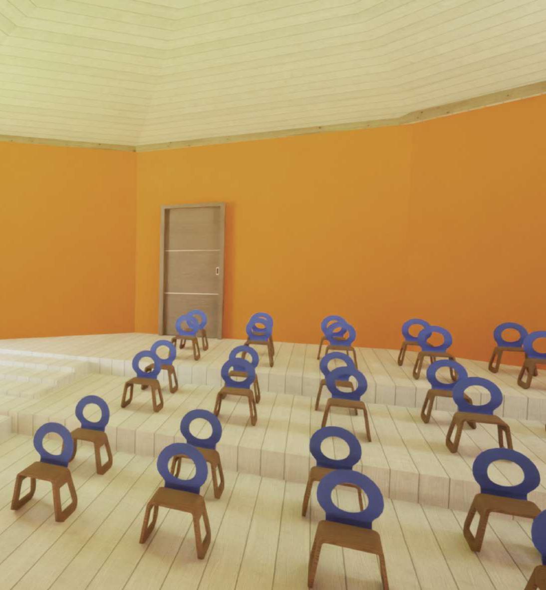 DasZieldesEntwurfsistes,eininspirierendesund funktionalesUmfeldzuschaffen,dasden AnforderungenjungerMenschenentspricht.Das ZentrumwirdmitverschiedenenWorkshop-Räumen undAteliersausgestattet,diedenBedürfnissender Zielgruppegerechtwerdensollen.