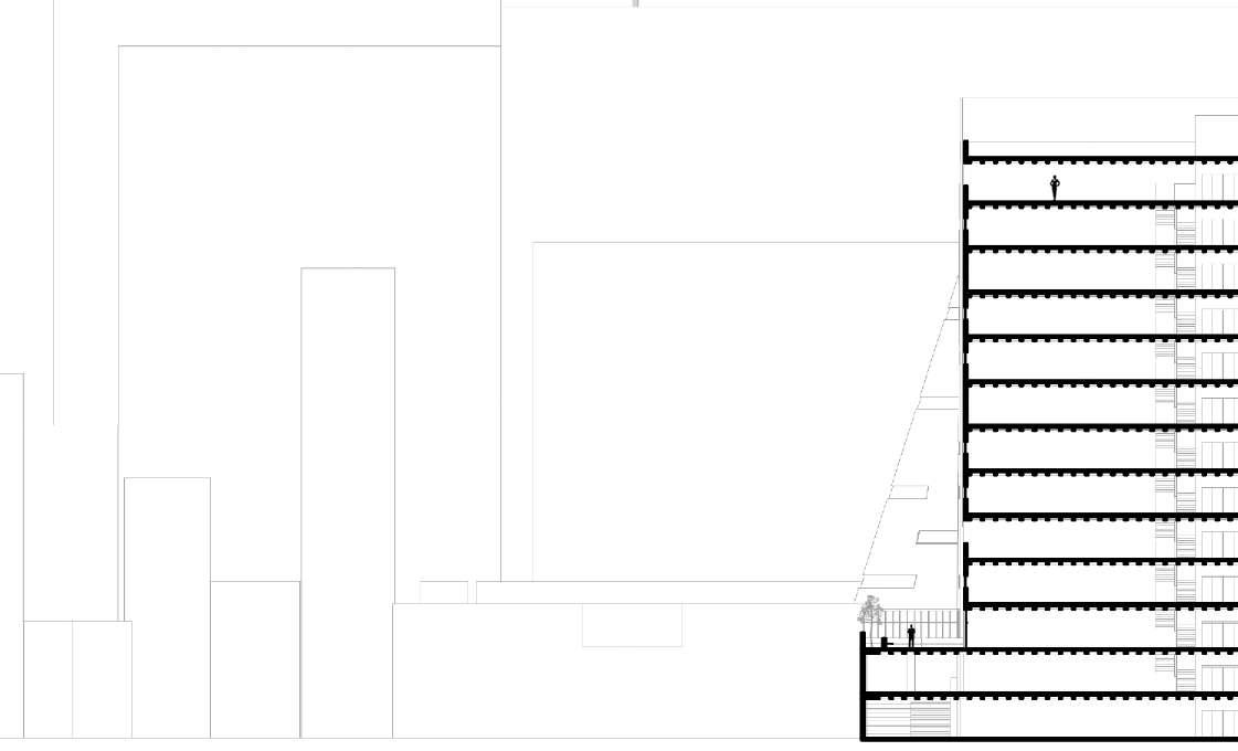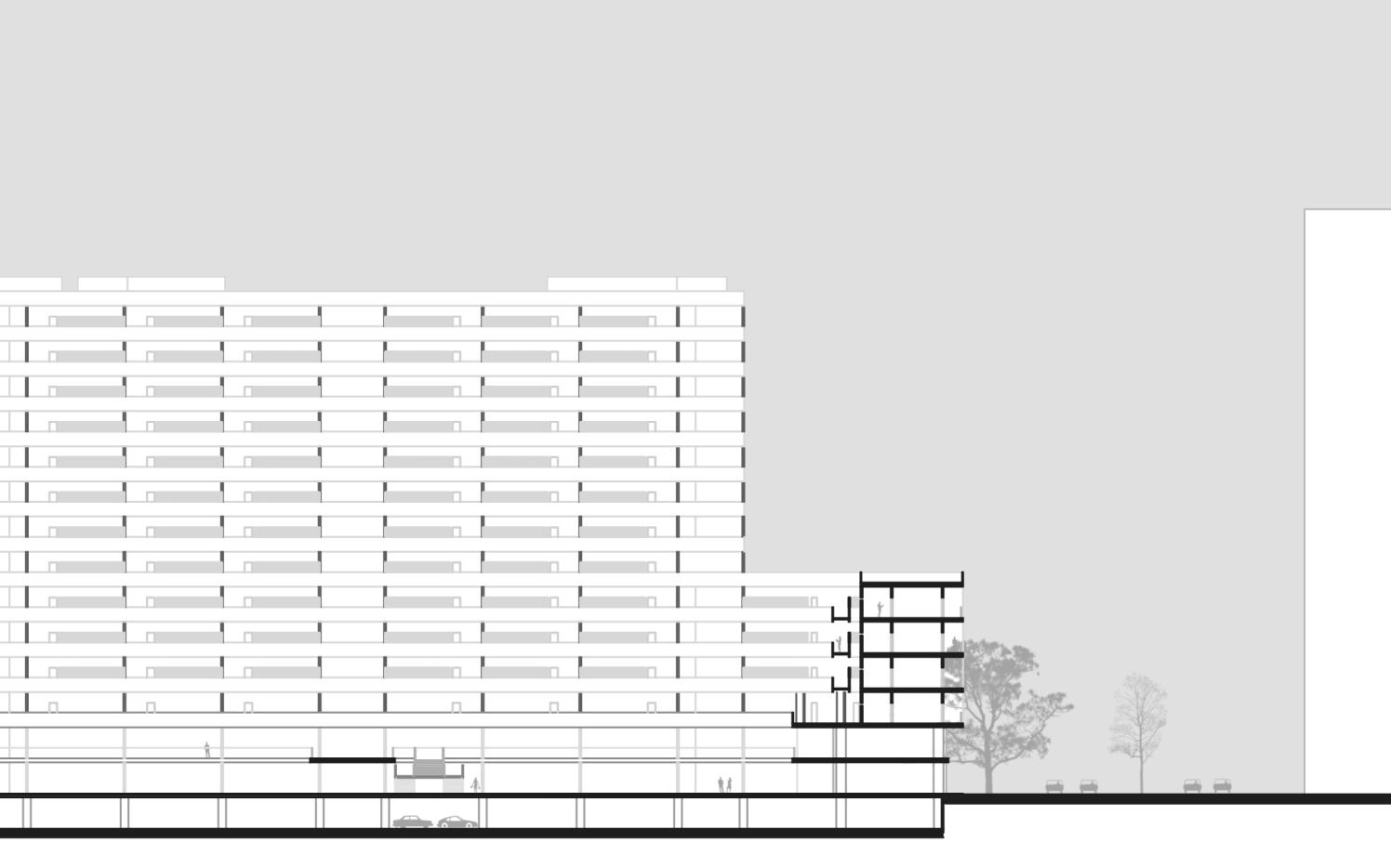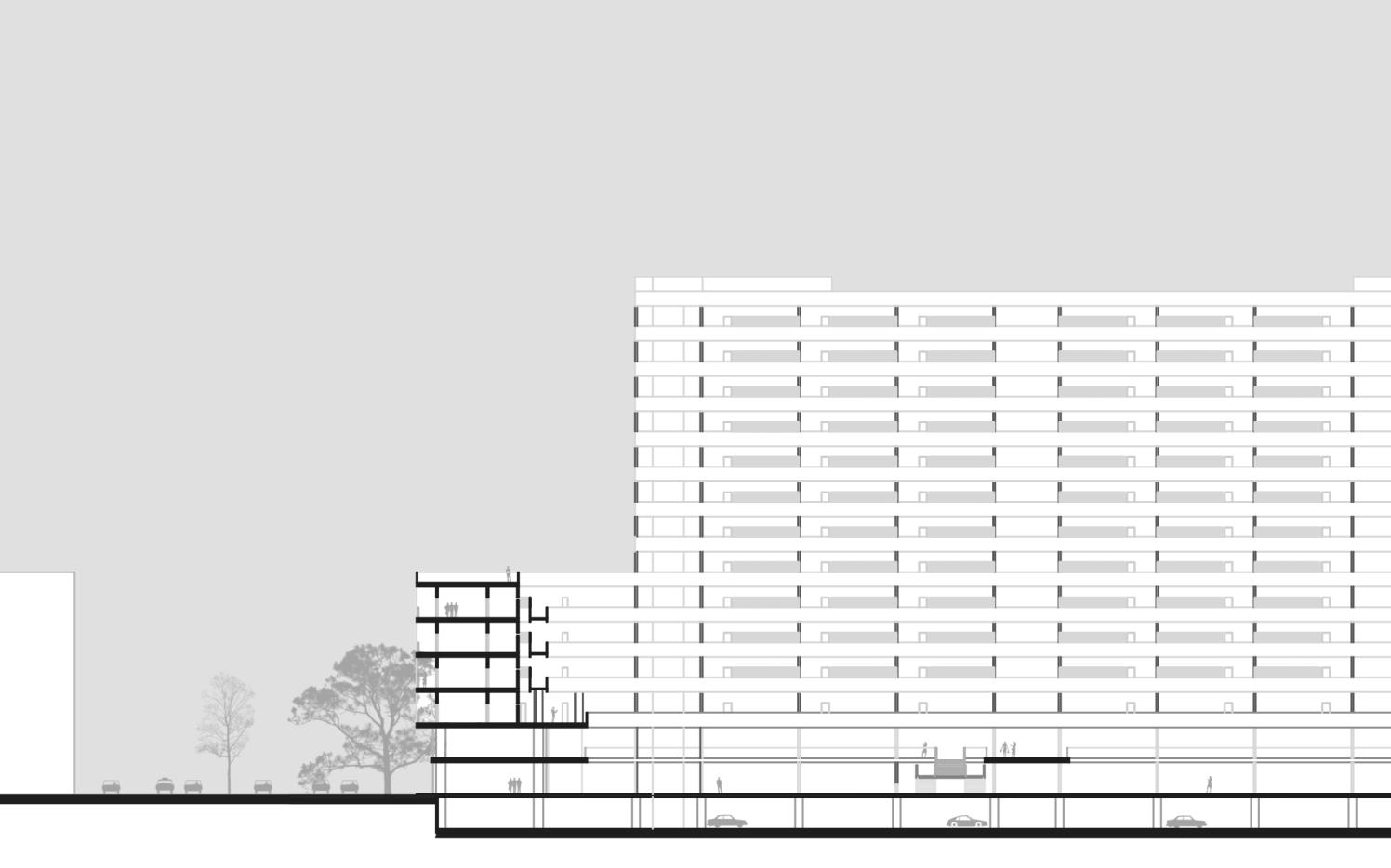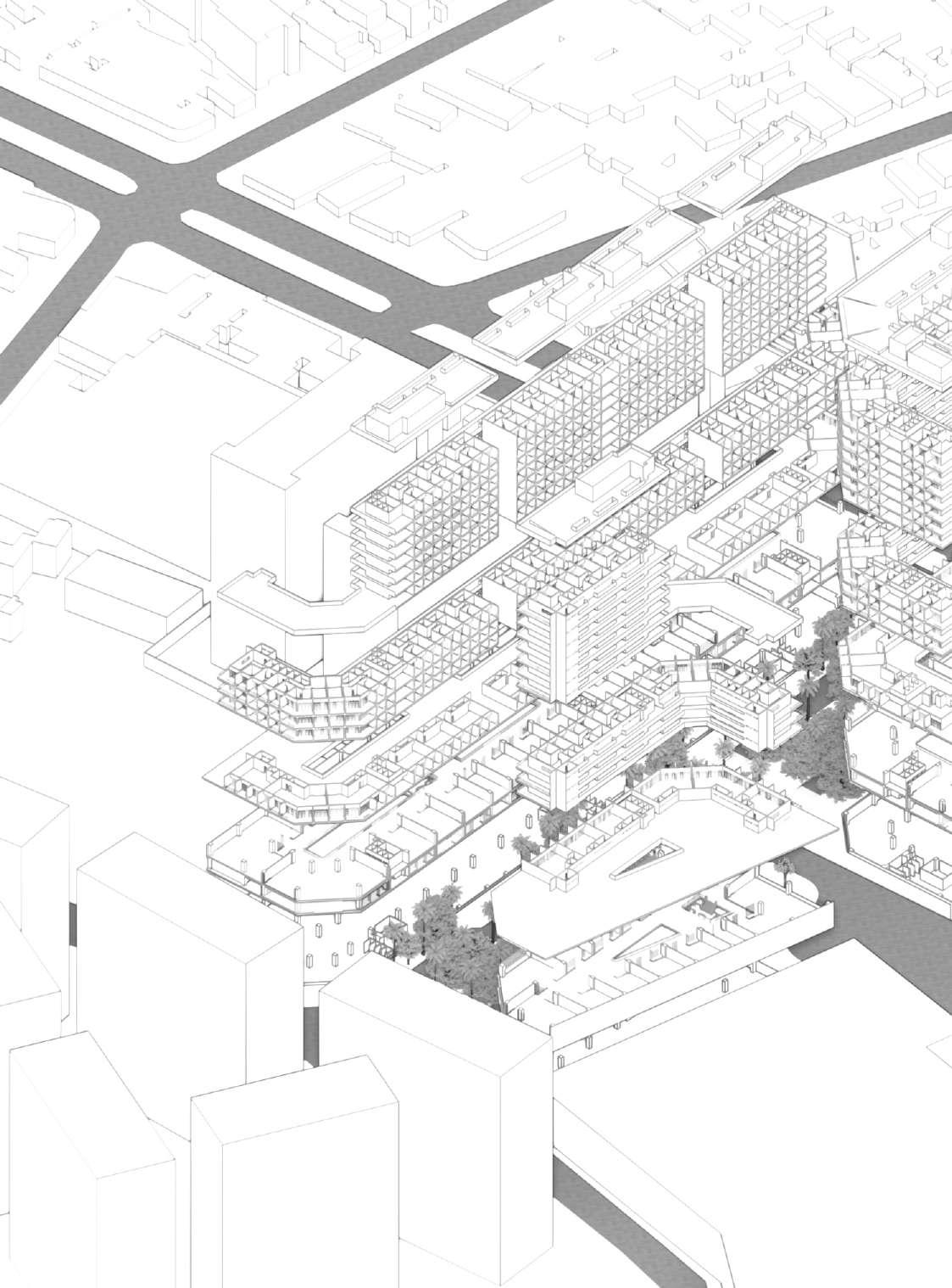 O projeto visa a requalicação de uma área desocupada presente em uma malha urbana consolidada e bem servida de equipamentos e mobilidade. Ao mesmo tempo, pretende-se oferecer uma solução alternativa ao modelo de enclausuramento, abrindo o interior da quadra da quadra para o uso público. A inclusão de um programa misto visa contribuir com o funcionamento contínuo do edifício ao longo do dia, criando condições favoráveis ao convívio público.