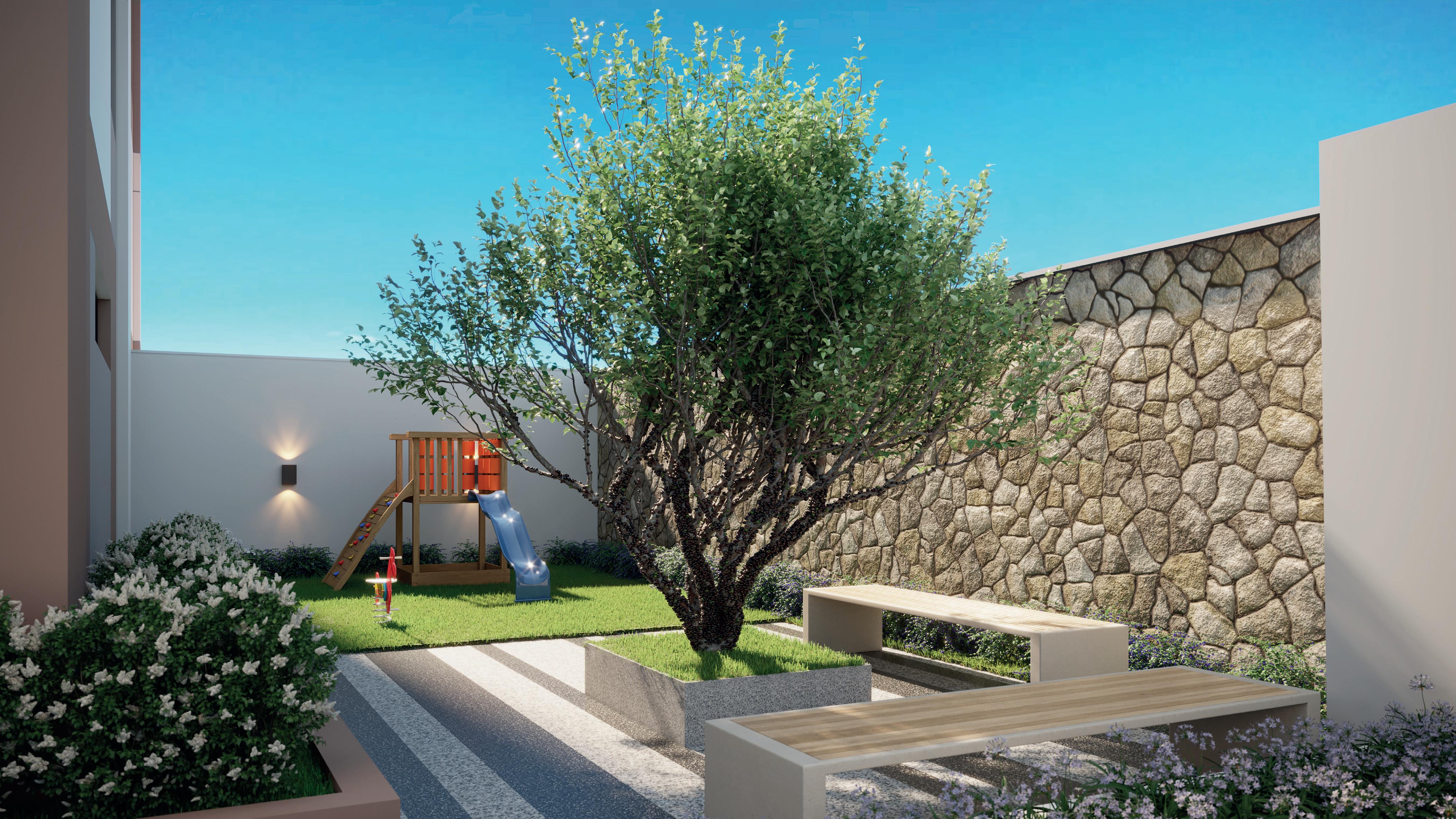 Playground aberto de 38,09m² integrado à Praça de 33,73m²