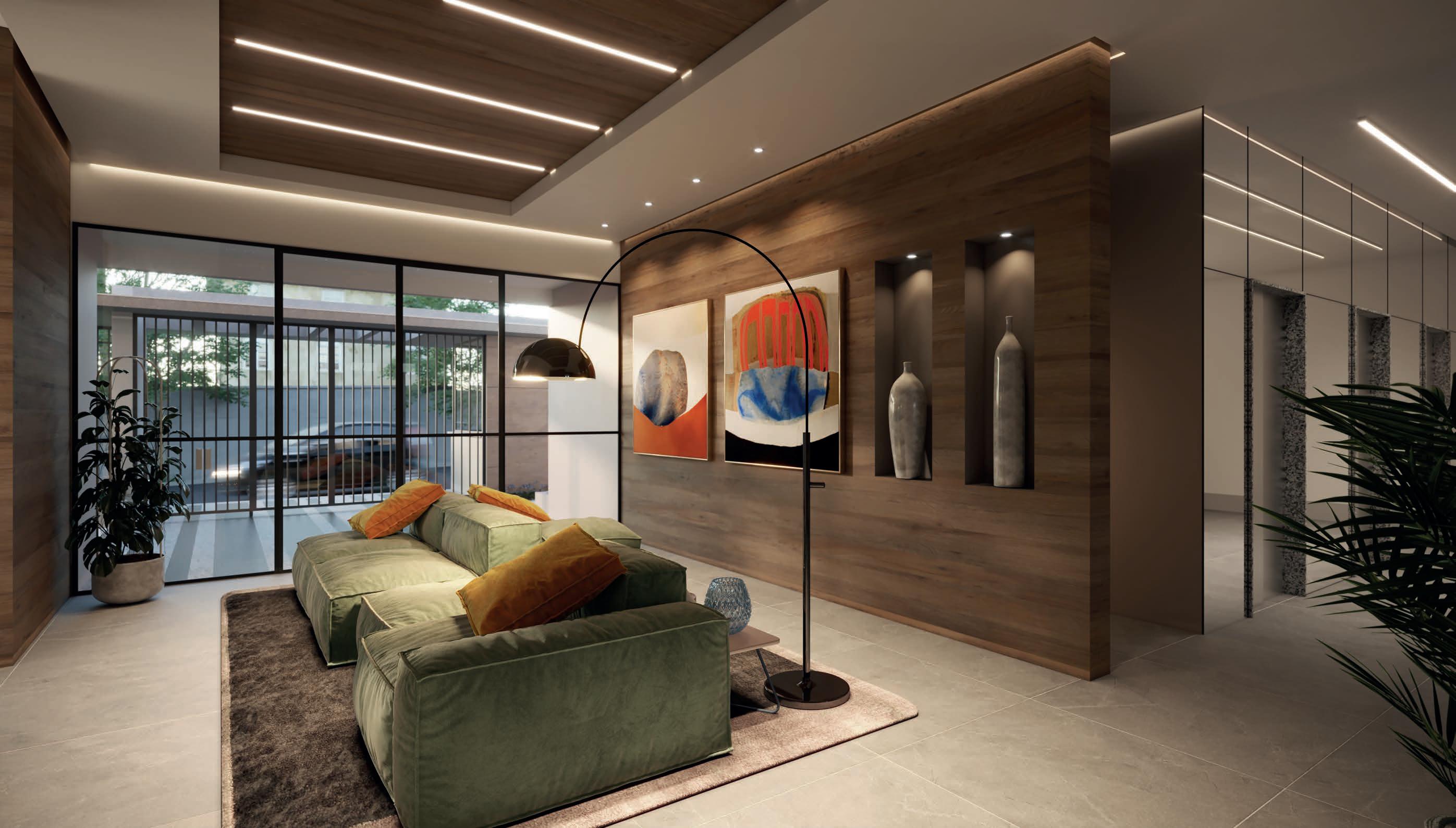 19º Andar Open Lounge com dois ambientes integrados, com 46,31m²