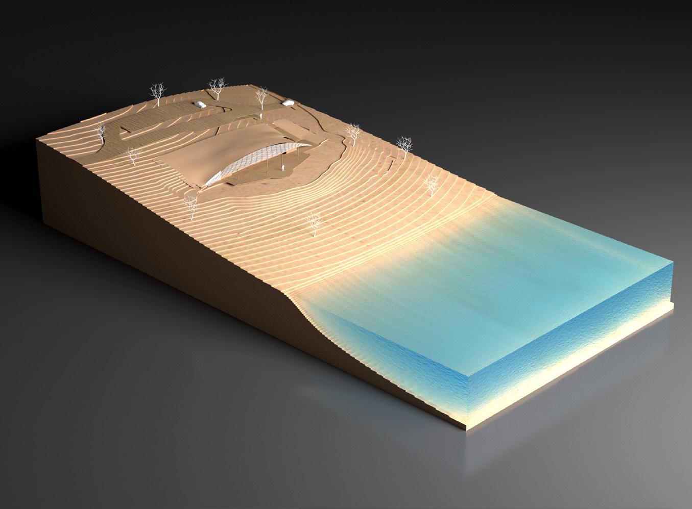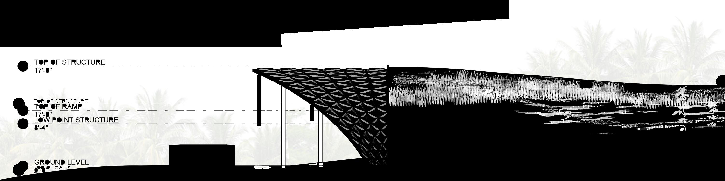 The new Ahupua’a magistrate land court to be felt like being raised from Anahola (HAWAII) landscape. As you approach the site from the road, the building appears to be hidden from sight, increasing the viewers’ interest. As you enter through the canopy structure, made by glulam lattice with double layers of ETFE cushion, you are faced a with the only façade that reveals the interior. The interior spaces are surrounded by a 14-inch retaining wall that supports a structure that consists of a plywood aerofoil structure.