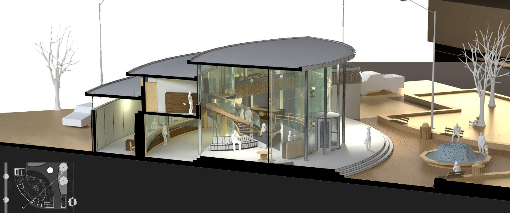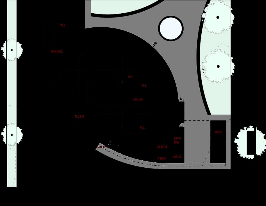 The design concept began with high consideration of the site and its historic position in Kansas. Troost avenue has historically served as a dividing line of racist segregation and disinvestment in Kansas City, and this is still present nowadays. The project rises from the idea of breaking that social division line and providing engaging moments for the community. The ideology of the building itself relates to the geometric shape of a circle which is associated with unification and sustainability. The bank acts as an arm, inviting society.