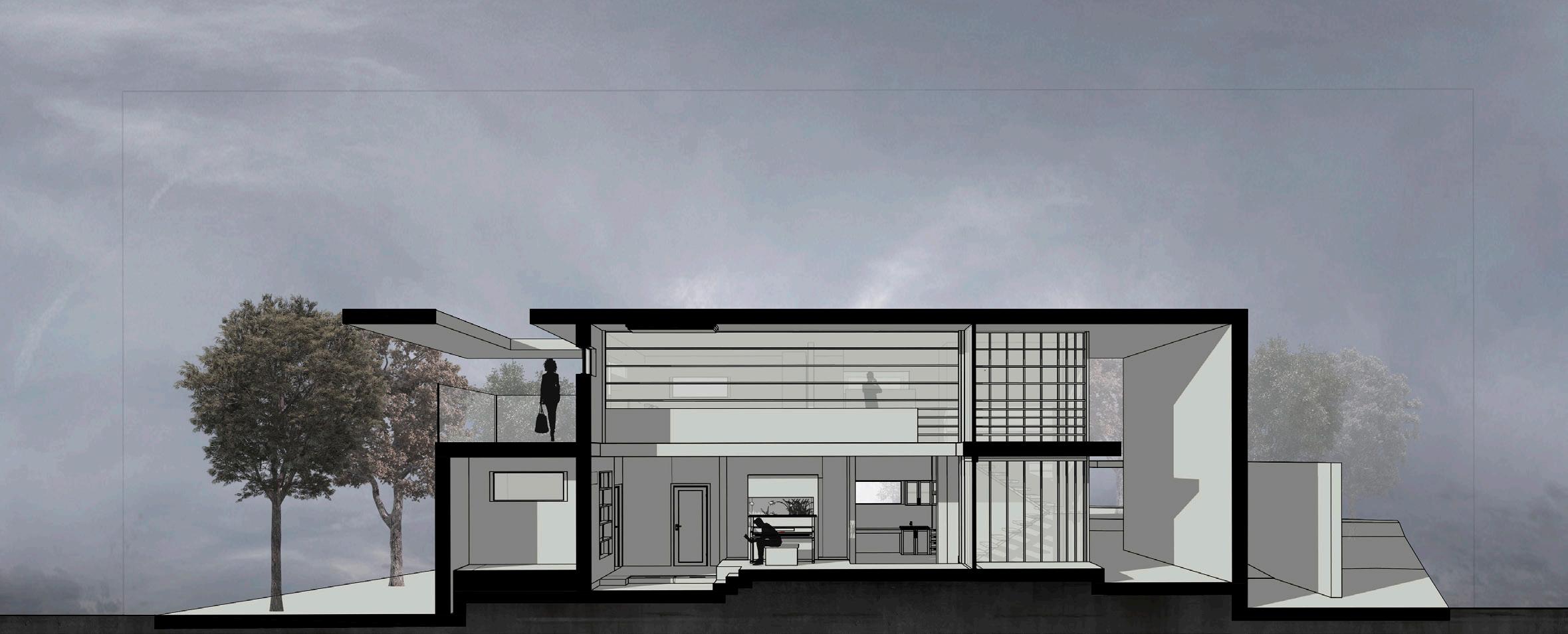 The clients of the project were a couple, the wife is a math professor and the husband a fish and wildlife manager as well as an improvisational musician. This project stems from the objective of a harmonic connection between music and math throughout architecture. To achieve this idea, the strategy was composed of utilizing color, rhythm, and the golden rectangle. This mathematical order is present in musical scale and architecture and nature proportion. This not only expresses their careers and interest but also connects them with the environment.