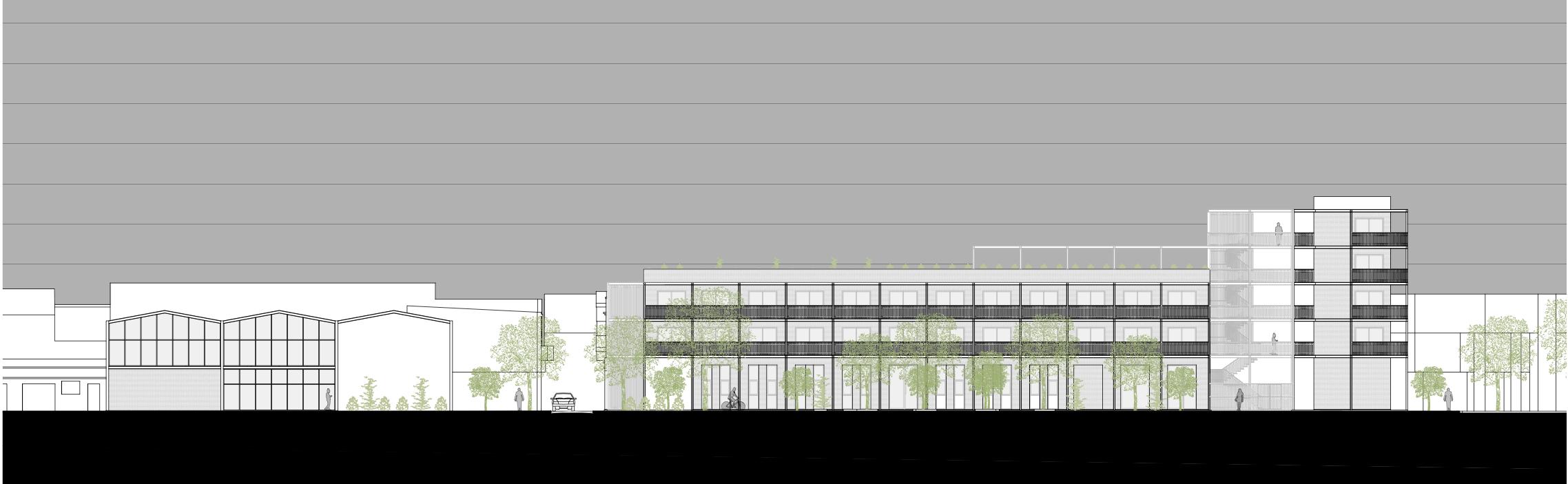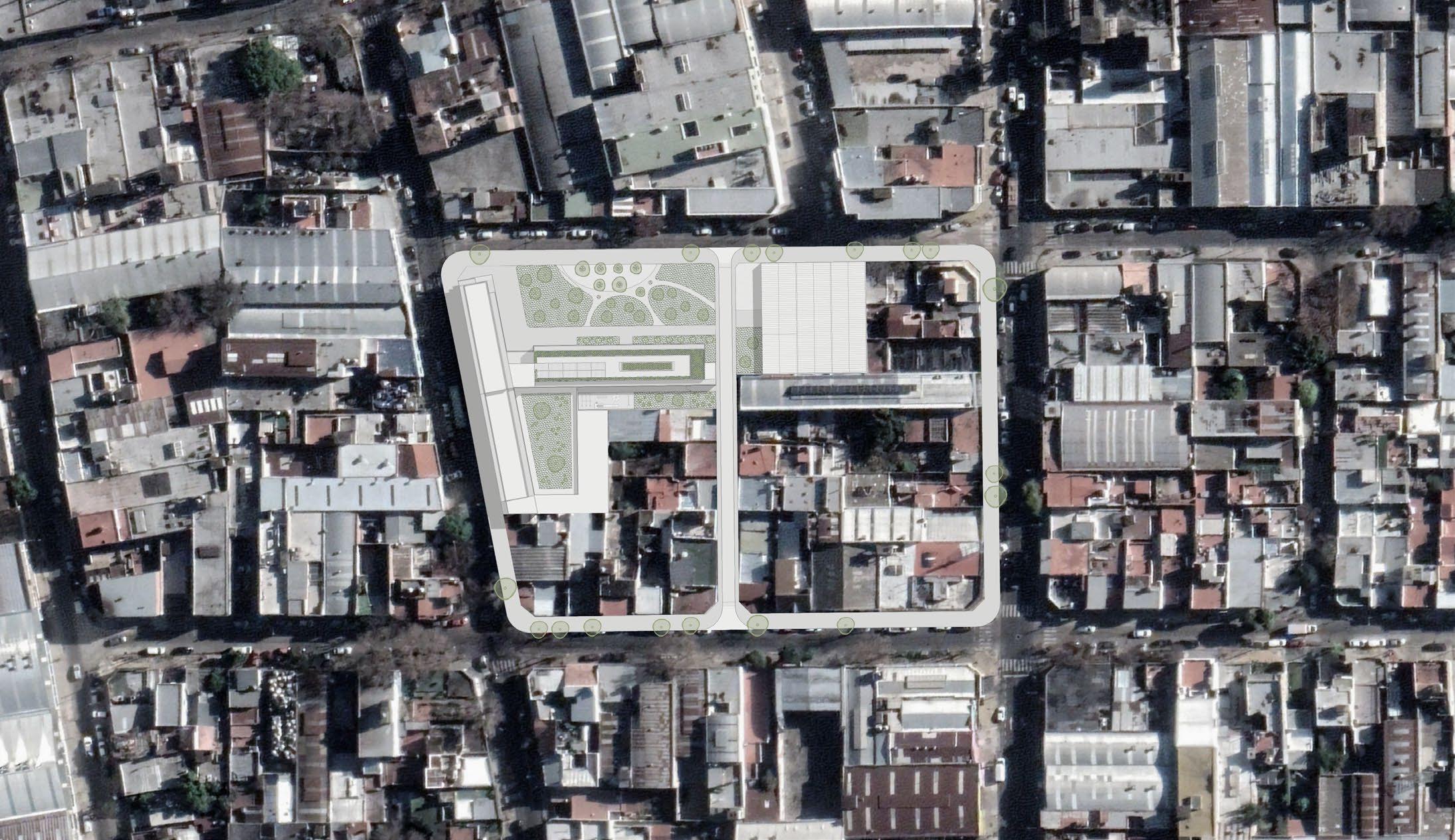 El proyecto se inicia con un relevamiento de una manzana en Villa Lynch, identificando problemáticas como la compacidad, la ocupación del suelo y la falta de espacios verdes. La estrategia de intervención se enfoca en el uso de terrenos industriales junto con la refuncionalización de dos naves. Se propone la apertura del pasaje existente y su transformación en una calle de tránsito pasante, junto con viviendas de alta densidad y una biblioteca municipal.