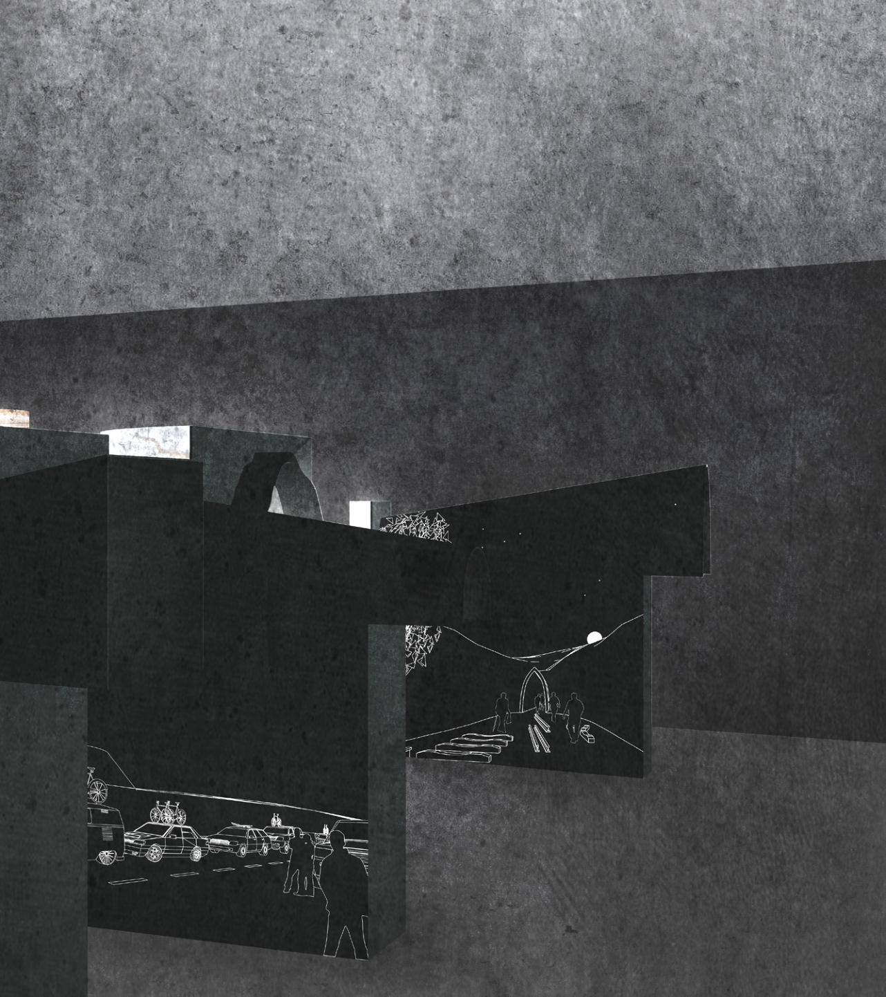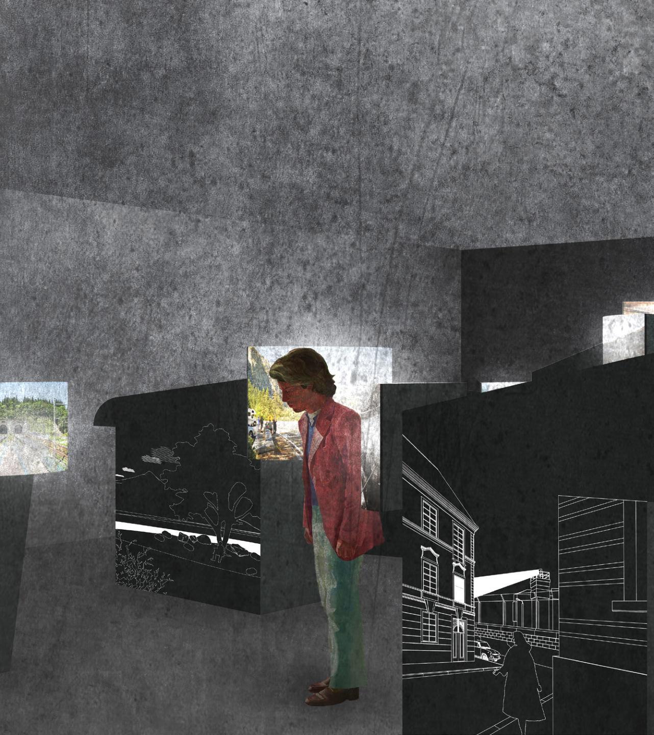 side, can be seen when you look inside of the tunnel through an exhibit and a atmospherical staging and in the end of the tunnel you can see its ending. Because we experience tunnels most of the time while sitting, there is boxes to sit on, which also makes the exhibitionwheelchair-friendly.Theexhibitionismobile,theobjectscanbesolitaireandthechosentunnels can stand alone, be replaced or more can be added.