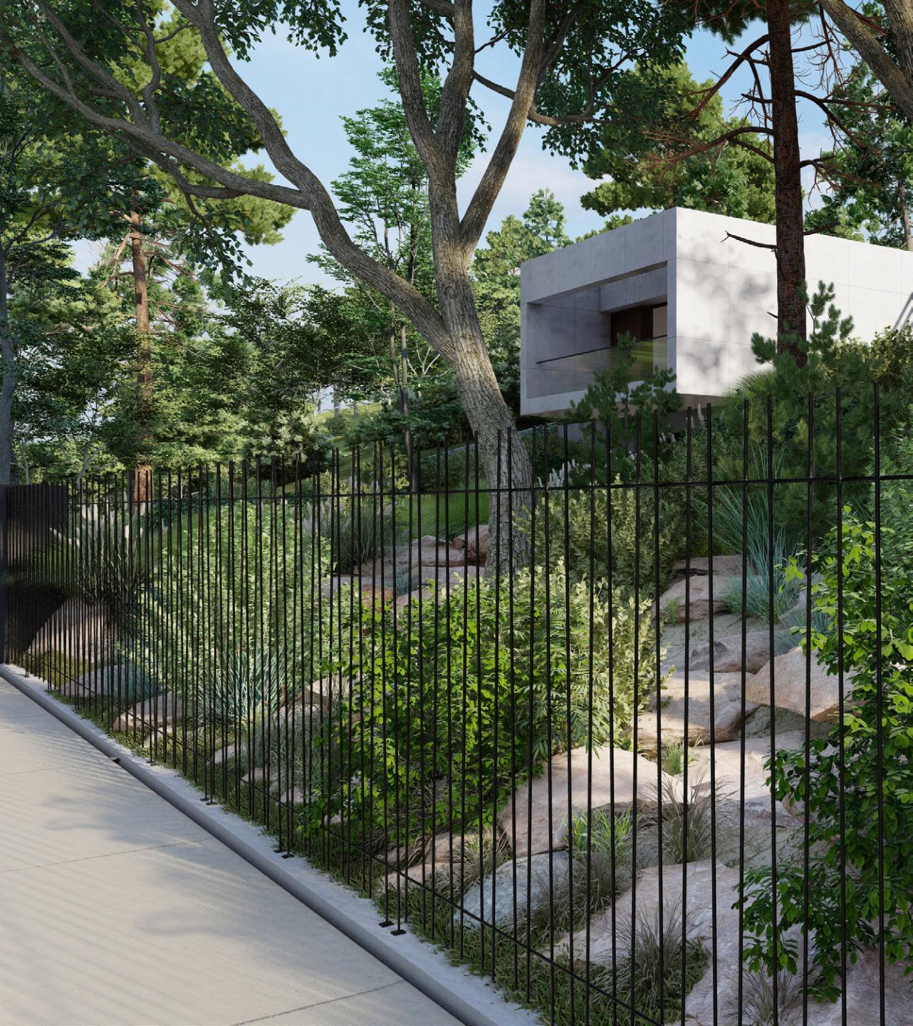 Iworkedonthedesignandconstructionofthe entrance element of this plot. The fence is the slimmest possible version to keep the transparency, only existing for seperating the plot from the road. The entrance element in contrast is a massive and solid element, that provides space for electricity and water meter, a doorelement,aletterboxandadoorforthecar.