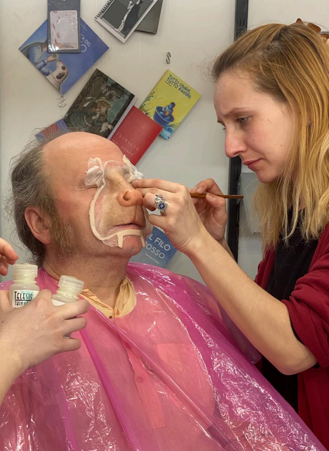 Calotte, parrucche, dentature, calchi e protesi di ogni genere faranno apparire il camerino come il laboratorio di uno stregone.